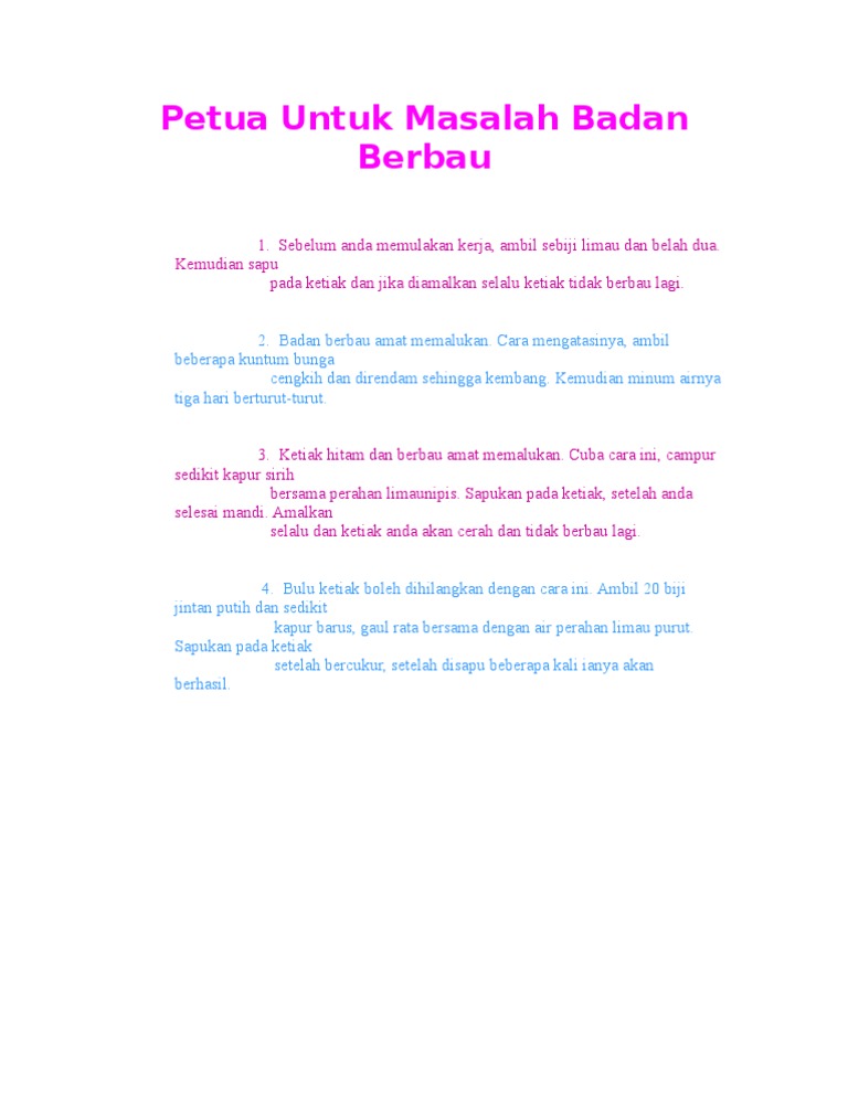 Petua Untuk Masalah Badan Berbau Pdf